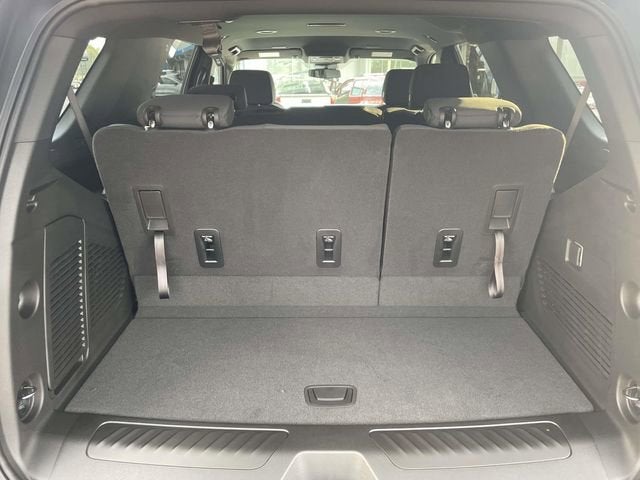 1st and 2nd Row Color-Keyed Carpeted Floor Mats, 2-Way Power Driver Lumbar Seat Adjuster, 2-Way Power Front Passenger Lumbar Seat Adjuster, 22 12-Spoke Polished Alloy Wheels, 3-Spoke Wrapped Steering Wheel, 3.23 Rear Axle Ratio, 3rd Row Manual 60/40 Split-Folding Bench Seats, 3rd row seats: split-bench, 4-Wheel Disc Brakes, 6 Speakers, 6-Speaker Audio System Feature, 6-Way Power Front Passenger Seat Adjuster, 8-Way Power Driver Seat Adjuster, ABS brakes, Air Conditioning, Alloy wheels, AM/FM radio: SiriusXM with 360L, Apple CarPlay/Android Auto, Auto High-beam Headlights, Automatic temperature control, Black Grille with Black Bowtie Emblem, Black Mirror Caps, Black Name Plates, Brake assist, Bumpers: body-color, Color-Keyed Carpeting Floor Covering, Compass, Delay-off headlights, Driver door bin, Driver vanity mirror, Dual front impact airbags, Dual front side impact airbags, Electronic Stability Control, Emergency communication system: OnStar and Chevrolet connected services capable, Exterior Parking Camera Rear, Floor Console with Storage Area, Four wheel independent suspension, Front anti-roll bar, Front Bucket Seats, Front Center Armrest, Front dual zone A/C, Front reading lights, Frontal Driver and Outboard Passenger Airbags, Fully automatic headlights, Heated door mirrors, Illuminated entry, Key Card, License Plate Front Mounting Package, Low tire pressure warning, LS Custom Edition, Navigation system: Google built-in compatibility (select service plan required, terms and limitations apply), Occupant sensing airbag, Outside temperature display, Overhead airbag, Overhead console, Panic alarm, Passenger door bin, Passenger vanity mirror, Power door mirrors, Power driver seat, Power passenger seat, Power steering, Power windows, Preferred Equipment Group 1LS, Premium audio system: Chevrolet Infotainment 3, Premium Cloth Seat Trim, Premium Smooth Ride Suspension, Radio data system, Radio: 17.7 Diagonal Advanced Color LCD Display, Rain sensing wipers, Rear air conditioning, Rear anti-roll bar, Rear reading lights, Rear seat center armrest, Rear window defroster, Rear window wiper, Remote keyless entry, Remote Start, Security system, Set of 4 Wheel Locks, SiriusXM with 360L Trial Subscription, Speed control, Speed-sensing steering, Split folding rear seat, Spoiler, Steering wheel mounted audio controls, Tachometer, Telescoping steering wheel, Tilt steering wheel, Traction control, Trip computer, USB Ports, Variably intermittent wipers, Voltmeter, Wheels: 18 x 8.5 Bright Silver Painted Aluminum, Wheels: 22 x 9 Steel Interim.