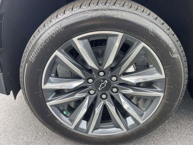 1st and 2nd Row Color-Keyed Carpeted Floor Mats, 2-Way Power Driver Lumbar Seat Adjuster, 2-Way Power Front Passenger Lumbar Seat Adjuster, 22 12-Spoke Polished Alloy Wheels, 3-Spoke Wrapped Steering Wheel, 3.23 Rear Axle Ratio, 3rd Row Manual 60/40 Split-Folding Bench Seats, 3rd row seats: split-bench, 4-Wheel Disc Brakes, 6 Speakers, 6-Speaker Audio System Feature, 6-Way Power Front Passenger Seat Adjuster, 8-Way Power Driver Seat Adjuster, ABS brakes, Air Conditioning, Alloy wheels, AM/FM radio: SiriusXM with 360L, Apple CarPlay/Android Auto, Auto High-beam Headlights, Automatic temperature control, Black Grille with Black Bowtie Emblem, Black Mirror Caps, Black Name Plates, Brake assist, Bumpers: body-color, Color-Keyed Carpeting Floor Covering, Compass, Delay-off headlights, Driver door bin, Driver vanity mirror, Dual front impact airbags, Dual front side impact airbags, Electronic Stability Control, Emergency communication system: OnStar and Chevrolet connected services capable, Exterior Parking Camera Rear, Floor Console with Storage Area, Four wheel independent suspension, Front anti-roll bar, Front Bucket Seats, Front Center Armrest, Front dual zone A/C, Front reading lights, Frontal Driver and Outboard Passenger Airbags, Fully automatic headlights, Heated door mirrors, Illuminated entry, Key Card, License Plate Front Mounting Package, Low tire pressure warning, LS Custom Edition, Navigation system: Google built-in compatibility (select service plan required, terms and limitations apply), Occupant sensing airbag, Outside temperature display, Overhead airbag, Overhead console, Panic alarm, Passenger door bin, Passenger vanity mirror, Power door mirrors, Power driver seat, Power passenger seat, Power steering, Power windows, Preferred Equipment Group 1LS, Premium audio system: Chevrolet Infotainment 3, Premium Cloth Seat Trim, Premium Smooth Ride Suspension, Radio data system, Radio: 17.7 Diagonal Advanced Color LCD Display, Rain sensing wipers, Rear air conditioning, Rear anti-roll bar, Rear reading lights, Rear seat center armrest, Rear window defroster, Rear window wiper, Remote keyless entry, Remote Start, Security system, Set of 4 Wheel Locks, SiriusXM with 360L Trial Subscription, Speed control, Speed-sensing steering, Split folding rear seat, Spoiler, Steering wheel mounted audio controls, Tachometer, Telescoping steering wheel, Tilt steering wheel, Traction control, Trip computer, USB Ports, Variably intermittent wipers, Voltmeter, Wheels: 18 x 8.5 Bright Silver Painted Aluminum, Wheels: 22 x 9 Steel Interim.