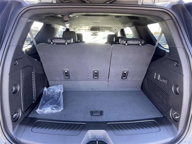 1st and 2nd Row Color-Keyed Carpeted Floor Mats, 2-Way Power Driver Lumbar Seat Adjuster, 2-Way Power Front Passenger Lumbar Seat Adjuster, 2nd Row Power Release 60/40 Split-Folding Bench Seat, 3-Spoke Wrapped Steering Wheel, 3.23 Rear Axle Ratio, 3rd Row 60/40 Power-Folding Split-Bench Seat, 3rd Row Manual 60/40 Split-Folding Bench Seats, 3rd row seats: split-bench, 4-Wheel Disc Brakes, 6 Speakers, 6-Speaker Audio System Feature, 8-Way Power Driver Seat Adjuster, 8-Way Power Front Passenger Seat Adjuster, ABS brakes, Air Conditioning, Alloy wheels, AM/FM radio: SiriusXM with 360L, Apple CarPlay/Android Auto, Auto High-beam Headlights, Auto-Dimming Inside Rear-View Mirror, Automatic temperature control, Bose 10-Speaker Centerpoint Surround Audio System Feature, Brake assist, Bumpers: body-color, Color-Keyed Carpeting Floor Covering, Comfort Package, Compass, Delay-off headlights, Driver door bin, Driver vanity mirror, Dual front impact airbags, Dual front side impact airbags, Electronic Stability Control, Emergency communication system: OnStar and Chevrolet connected services capable, Exterior Parking Camera Rear, Floor Console with Storage Area, Four wheel independent suspension, Front anti-roll bar, Front Bucket Seats, Front Center Armrest, Front dual zone A/C, Front LED Fog Lamps, Front reading lights, Frontal Driver and Outboard Passenger Airbags, Fully automatic headlights, Heated 2nd Row Outboard Seats, Heated door mirrors, Heated Driver and Front Passenger Seats, Heated front seats, Heated Steering Wheel, Illuminated entry, Interior Camera, Key Card, Leather-Appointed Seat Trim, LED Headlamps with LED Daytime Running Lamps, LED Tail Lamps, License Plate Front Mounting Package, Low tire pressure warning, Luxury Package, Memory seat, Memory Settings, Memory Settings For Driver, Navigation system: Google built-in compatibility (select service plan required, terms and limitations apply), Occupant sensing airbag, Outside Heated Power-Adjustable Mirrors, Outside temperature display, Overhead airbag, Overhead console, Panic alarm, Passenger door bin, Passenger vanity mirror, Power door mirrors, Power driver seat, Power Liftgate, Power passenger seat, Power Release 2nd Row Bucket Seats, Power steering, Power windows, Preferred Equipment Group 1LT, Premium audio system: Chevrolet Infotainment 3 Premium, Premium Smooth Ride Suspension, Radio data system, Radio: 17.7 Diagonal Advanced Color LCD Display, Rain sensing wipers, Rear air conditioning, Rear anti-roll bar, Rear Power Liftgate, Rear reading lights, Rear seat center armrest, Rear window defroster, Rear window wiper, Remote keyless entry, Remote Start, Security system, SiriusXM with 360L Trial Subscription, Speed control, Speed-sensing steering, Split folding rear seat, Spoiler, Steering wheel mounted audio controls, Tachometer, Telescoping steering wheel, Tilt steering wheel, Traction control, Trip computer, Universal Home Remote, USB Ports, Variably intermittent wipers, Voltmeter, Wheels: 18 x 8.5 Bright Silver Painted Aluminum, Wheels: 20 x 9 Machined Aluminum, Wireless Phone Charging.