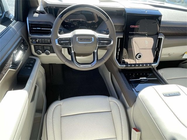 10 Speakers, 15 Diagonal Multi-Color Head-Up Display, 3 Years OnStar One, 3.23 Rear Axle Ratio, 3rd Row All-Weather Floor Liners, 3rd row seats: split-bench, 4-Way Power Driver Lumbar Seat Adjuster, 4-Way Power Front Passenger Lumbar Seat Adjuster, 4-Wheel Disc Brakes, ABS brakes, Adaptive suspension, Advanced Security Package, Advanced Technology Package, Air Conditioning, Air Ride Adaptive Suspension, All-Weather Cargo Mat, Alloy wheels, AM/FM radio: SiriusXM with 360L, Apple CarPlay/Android Auto, Audio memory, Auto High-beam Headlights, Auto-dimming door mirrors, Auto-dimming Rear-View mirror, Auto-leveling suspension, Automatic temperature control, AutoSense Hands-Free Power Liftgate, Blind Zone Steering Assist with Trailering, Bodyside moldings, Bose 10-Speaker Surround with CenterPoint, Brake assist, Bright Front and Rear Door Sill Plates, Bumpers: body-color, Compass, Delay-off headlights, Denali Reserve Package, Driver Attention Assist, Driver door bin, Driver vanity mirror, Dual Exhaust System, Dual front impact airbags, Dual front side impact airbags, Dual-Pane Panoramic Power Sunroof, Electronic Stability Control, Emergency communication system: OnStar and GMC connected services capable, Enhanced Trailering Technology Package, Exterior Parking Camera Rear, Extra Capacity Cooling System, First and Second Rows Premium Floor Liners, Floor Liner Package, Four wheel independent suspension, Front anti-roll bar, Front Bucket Seats, Front Center Armrest, Front dual zone A/C, Front fog lights, Front reading lights, Fully automatic headlights, Galvano Bodyside Moldings, Garage door transmitter, Glass Breakage Sensor, Heads-Up Display, Heated door mirrors, Heated Driver and Front Passenger Seats, Heated front seats, Heated rear seats, Heated steering wheel, Hill Descent Control, Hitch View, Illuminated entry, Inside Rearview Auo-Dimming Rear Camera Mirror, Integrated Trailer Brake Controller, License Plate Front Mounting Package, Low tire pressure warning, Magnetic Ride Control Suspension, Max Trailering Package, Memory seat, Navigation system: GMC Connected Navigation, Occupant sensing airbag, Outside temperature display, Overhead airbag, Overhead console, Panic alarm, Passenger door bin, Passenger vanity mirror, Perforated Heather and Ventilated Driver and Front Passenger Seats, Perforated Leather Seating Surfaces, Power door mirrors, Power driver seat, Power Liftgate, Power passenger seat, Power Release 2nd Row Bucket Seats, Power steering, Power Tilt and Telescopic Steering Column, Power windows, Power-Retractable Assist Steps, Preferred Equipment Group 5SA, Radio: 16.8 Diagonal Premium GMC Infotainment System, Rain sensing wipers, Rear air conditioning, Rear anti-roll bar, Rear reading lights, Rear Seat Media System, Rear window defroster, Rear window wiper, Remote keyless entry, Security system, SiriusXM with 360L, Smart Trailer Integration Indicator, Speed control, Speed-sensing steering, Split folding rear seat, Spoiler, Steering wheel memory, Steering wheel mounted audio controls, Super Cruise, Tachometer, Telescoping steering wheel, Theft-Deterrent Alarm System, Tilt steering wheel, Traction control, Trailer Camera Provisions, Trailering Assist Guidelines, Trip computer, Turn signal indicator mirrors, Variably intermittent wipers, Vehicle Inclination Sensor, Vehicle Interior Movement Sensor, Ventilated front seats, Voltmeter, Wheel Locks (set of 4), Wheels: 20 x 9 6-Spoke Polished Aluminum, Wheels: 22 x 9 Ultra-Bright Machined, Wired Auxiliary Trailer Camera.