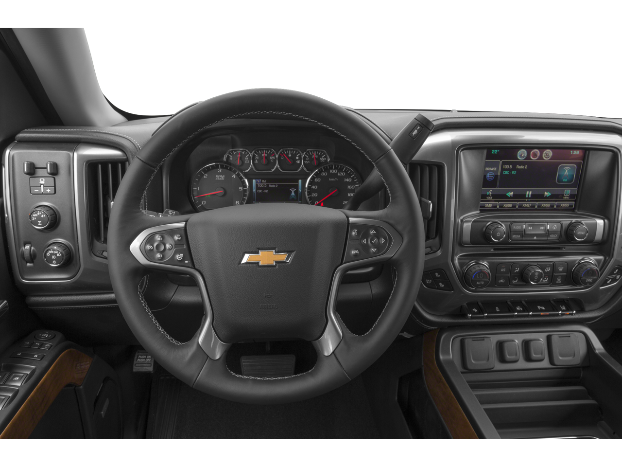110-Volt AC Power Outlet, 150 Amp Alternator, 4-Wheel Disc Brakes, 4.2 Diagonal Color Display Driver Info Center, 40/20/40 Front Split Bench Seat, 6 Speaker Audio System, 6 Speakers, ABS brakes, Air Conditioning, Alloy wheels, AM/FM radio: SiriusXM, Auto-dimming door mirrors, Auto-Dimming Inside Rear-View Mirror, Auto-dimming Rear-View mirror, Automatic temperature control, Auxiliary External Transmission Oil Cooler, Bluetooth® For Phone, Bodyside moldings, Brake assist, Bumpers: chrome, CD player, Chrome Bodyside Moldings, Chrome Cap Power-Adjustable Heated Outside Mirrors, Chrome Door Handles, Chrome Grille w/Chrome Surround, Chrome Mirror Caps, Color-Keyed Carpeting w/Rubberized Vinyl Floor Mats, Compass, Deep-Tinted Glass, Delay-off headlights, Driver & Front Passenger Illuminated Vanity Mirrors, Driver door bin, Driver vanity mirror, Dual front impact airbags, Dual front side impact airbags, Dual-Zone Automatic Climate Control, Electric Rear-Window Defogger, Electronic Stability Control, Emergency communication system: OnStar Directions & Connections, Exterior Parking Camera Rear, EZ Lift & Lower Tailgate, Floor Mounted Console, Front anti-roll bar, Front Center Armrest w/Storage, Front Chrome Bumper, Front dual zone A/C, Front fog lights, Front Full Feature Power Reclining Bucket Seats, Front Halogen Fog Lamps, Front reading lights, Front wheel independent suspension, Fully automatic headlights, Garage door transmitter, Heated door mirrors, Heated Driver & Front Passenger Seats, Heated front seats, Heavy-Duty Rear Locking Differential, Illuminated entry, Integrated Trailer Brake Controller, Leather Appointed Seat Trim, Leather Wrapped Steering Wheel w/Cruise Controls, Low tire pressure warning, Manual Tilt/Telescoping Steering Column, Memory seat, Occupant sensing airbag, OnStar 6 Months Directions & Connections Plan, OnStar w/4G LTE, Outside temperature display, Overhead airbag, Overhead console, Panic alarm, Passenger door bin, Passenger vanity mirror, Power door mirrors, Power driver seat, Power passenger seat, Power Sliding Rear Window, Power steering, Power Sunroof, Power windows, Power Windows w/Driver Express Up, Premium audio system: Chevrolet MyLink, Radio data system, Radio: AM/FM 8 Diagonal Clr Touch Nav, Radio: AM/FM 8 Diagonal Color Touch Screen, Rear 60/40 Folding Bench Seat (Folds Up), Rear Chrome Bumper, Rear reading lights, Rear seat center armrest, Rear step bumper, Rear Vision Camera w/Dynamic Guide Lines, Rear Wheelhouse Liners, Rear window defroster, Remote Keyless Entry, Remote keyless entry, Remote Vehicle Starter System, Security system, Single Slot CD/MP3 Player, SiriusXM Satellite Radio, Speed control, Speed-sensing steering, Split folding rear seat, Steering Wheel Audio Controls, Steering wheel mounted audio controls, Tachometer, Telescoping steering wheel, Theft Deterrent System (Unauthorized Entry), Tilt steering wheel, Traction control, Trailering Equipment, Trip computer, Turn signal indicator mirrors, Universal Home Remote, Variably intermittent wipers, Voltmeter, Wheels: 20 x 9 Chrome.