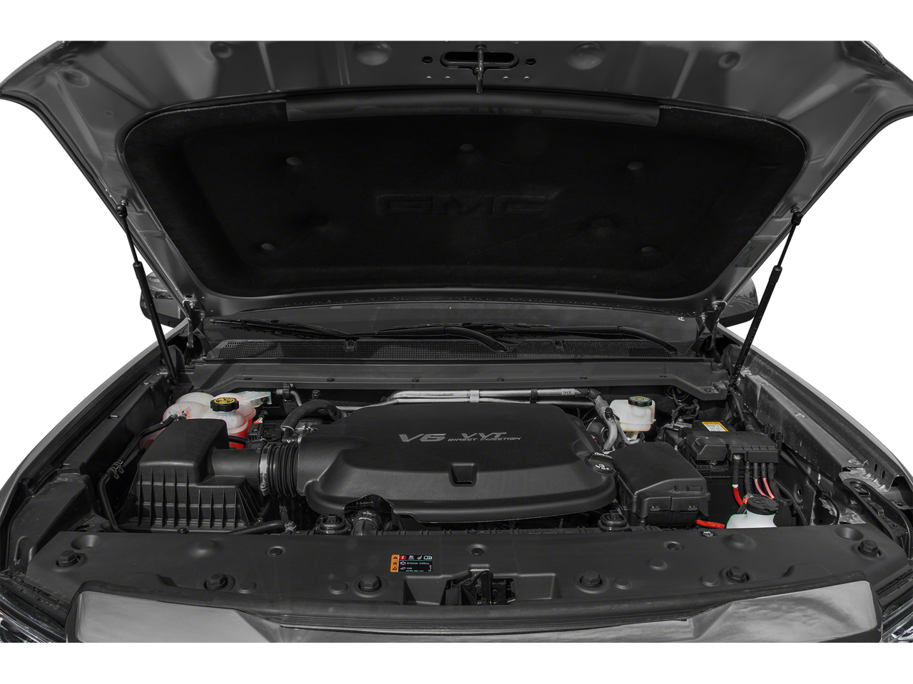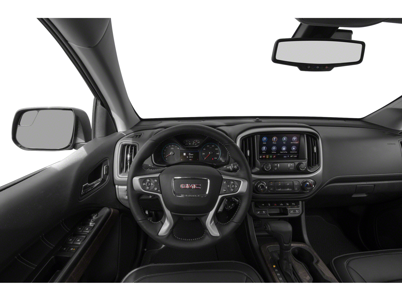 1st & 2nd Rows All-Weather Floor Liner (LPO), 2 USB Data Ports, 3.42 Rear Axle Ratio, 4-Way Power Front Passenger Seat Adjuster, 4-Wheel Disc Brakes, 5 Rectangular Chrome Assist Steps, 7 Speakers, ABS brakes, Air Conditioning, Alloy wheels, AM/FM radio: SiriusXM with 360L, Apple CarPlay/Android Auto, Auto-dimming Rear-View mirror, Automatic temperature control, Black Spray-On Bedliner w/GMC Logo, Bose Premium 7-Speaker Audio System Feature, Bumpers: body-color, Chrome Recovery Hooks, Compass, Delay-off headlights, Driver 6-Way Power Seat Adjuster, Driver Alert Package, Driver door bin, Driver vanity mirror, Dual front impact airbags, Dual front side impact airbags, Electronic Stability Control, Emergency communication system: OnStar and GMC Connected Services capable, Exterior Parking Camera Rear, Forward Collision Alert, Front anti-roll bar, Front Bucket Seats, Front Center Armrest, Front fog lights, Front License Plate Kit, Front reading lights, Front wheel independent suspension, Fully automatic headlights, Genuine wood console insert, Genuine wood door panel insert, HD Radio, Heated door mirrors, Heated Steering Wheel, Heated steering wheel, Hitch Guidance, Illuminated entry, Integrated Trailer Brake Controller, Lane Departure Warning System, Low tire pressure warning, Navigation System, Occupant sensing airbag, Outside temperature display, Overhead airbag, Overhead console, Panic alarm, Passenger door bin, Passenger vanity mirror, Perforated Leather-Appointed Seat Trim, Polished Exhaust Tip, Power door mirrors, Power Driver Lumbar Control Seat Adjuster, Power driver seat, Power Passenger Lumbar Control Seat Adjuster, Power passenger seat, Power steering, Power windows, Preferred Equipment Group 4SD, Premium audio system: GMC Infotainment System, Radio data system, Radio: AM/FM w/8 Diagonal Multi-Touch Display Nav, Rear reading lights, Rear seat center armrest, Rear step bumper, Rear window defroster, Remote keyless entry, Security system, SiriusXM Radio, Speed control, Speed-sensing steering, Steering wheel mounted audio controls, Tachometer, Telescoping steering wheel, Tilt steering wheel, Tow/Haul Mode, Traction control, Trailering Package, Trip computer, Ultrasonic Rear Parking Assist, Variably intermittent wipers, Wheels: 20 x 8.5 Diamond Cut Machined Aluminum, Wireless Charging for Compatible Cell Phones.