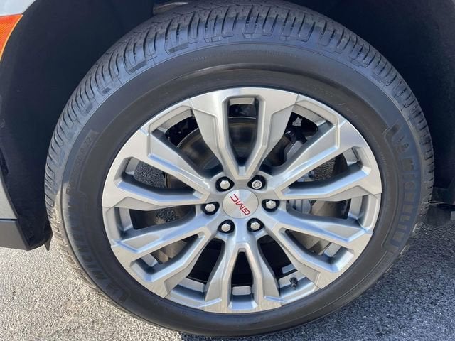 14 Speakers, 15 Diagonal Multi-Color Head-Up Display, 2 Presets For Outside Rearview Mirrors, 3 Years of GMC Connected Services, 3.23 Rear Axle Ratio, 3rd Row 60/40 Power-Folding Split-Bench Seat, 3rd row seats: split-bench, 4-Wheel Disc Brakes, ABS brakes, Adaptive suspension, Air Conditioning, Alloy wheels, AM/FM radio: SiriusXM with 360L, AM/FM Stereo, Apple CarPlay/Android Auto, Auto High-beam Headlights, Auto-dimming door mirrors, Auto-dimming Rear-View mirror, Auto-leveling suspension, Automatic Emergency Braking, Automatic Stop/Start, Automatic temperature control, Bodyside moldings, Bose 14-Speaker Surround w/CenterPoint, Brake assist, Bright Front & Rear Door Sill Plates, Bumpers: body-color, Chrome Door Handles w/Body-Color Strip, Compass, Delay-off headlights, Driver door bin, Driver vanity mirror, Dual Exhaust System, Dual front impact airbags, Dual front side impact airbags, Dual-Pane Panoramic Power Sunroof, Electronic Stability Control, Emergency communication system: OnStar and GMC Connected Services capable, Floor Console, Following Distance Indicator, Forward Collision Alert, Four wheel independent suspension, Front & Rear Park Assist, Front anti-roll bar, Front Bucket Seats, Front Center Armrest, Front dual zone A/C, Front fog lights, Front Pedestrian Braking, Front reading lights, Fully automatic headlights, Galvano Bodyside Moldings, Garage door transmitter, Hands-Free Power Programmable Rear Liftgate, HD Surround Vision, Heads-Up Display, Heated & Ventilated Driver & Front Passenger Seats, Heated 2nd Row Outboard Position Seats, Heated door mirrors, Heated Driver & Front Passenger Seats, Heated front seats, Heated rear seats, Heated Steering Wheel, Heated steering wheel, Hill Descent Control, Illuminated entry, Inside Rear-View Auto-Dimming Mirror, IntelliBeam Automatic High Beam On/Off, Jet Black Interior Trim, Lane Change Alert w/Side Blind Zone Alert, Lane Keep Assist w/Lane Departure Warning, Leather steering wheel, Low tire pressure warning, Magnetic Ride Control Suspension, Memory seat, Navigation System, Not Equipped w/4-Way Driver & Fr Pass Pwr Lumbar, Not Equipped w/Fr & Rr Pk Assist/Rev Auto Braking, Not Equipped w/Steering Column Lock, Occupant sensing airbag, Outside Heated Power-Adjustable Mirrors, Outside temperature display, Overhead airbag, Overhead console, Panic alarm, Passenger door bin, Passenger vanity mirror, Perforated Leather Seating Surfaces, Power door mirrors, Power driver seat, Power Liftgate, Power passenger seat, Power Release 2nd Row Bucket Seats, Power steering, Power Tilt & Telescopic Steering Column, Power windows, Power-Retractable Assist Steps, Preferred Equipment Group 5SA, Rain sensing wipers, Rear air conditioning, Rear anti-roll bar, Rear Cross Traffic Alert, Rear Pedestrian Alert, Rear reading lights, Rear window defroster, Rear window wiper, Remote keyless entry, Roof rack: rails only, Safety Alert Seat, Security system, SiriusXM w/360L, Speed control, Speed-sensing steering, Split folding rear seat, Spoiler, Start/Stop System Disable Button, Steering wheel memory, Steering wheel mounted audio controls, Tachometer, Telescoping steering wheel, Tilt steering wheel, Traction control, Trip computer, Turn signal indicator mirrors, Universal Home Remote, Variably intermittent wipers, Ventilated front seats, Voltmeter, Wheel Locks (Set of 4) (LPO), Wheels: 20 x 9 6-Spoke Polished Aluminum, Wheels: 22 x 9 Bright Machined Aluminum, Wireless Charging.