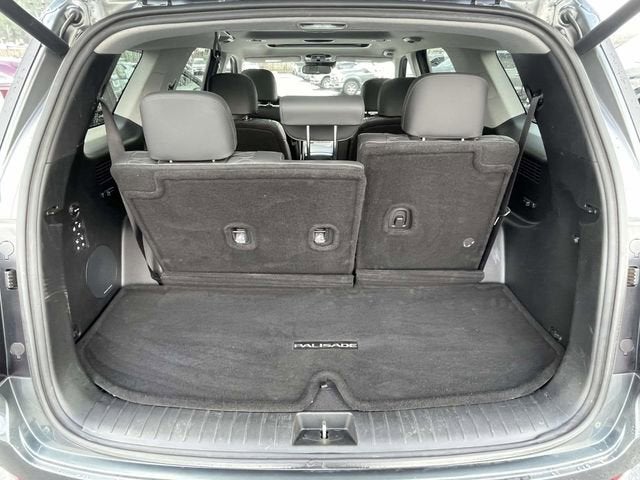 12 Speakers, 3.648 Axle Ratio, 3rd row seats: split-bench, 4-Wheel Disc Brakes, ABS brakes, Air Conditioning, Alloy wheels, AM/FM radio: SiriusXM, Apple CarPlay & Android Auto, Auto High-beam Headlights, Auto-dimming Rear-View mirror, Auto-leveling suspension, Automatic temperature control, Brake assist, Bumper Applique, Bumpers: body-color, Cargo Net, Cargo Tray, Carpeted Floor Mats, Compass, Delay-off headlights, Driver door bin, Driver vanity mirror, Dual front impact airbags, Dual front side impact airbags, Electronic Stability Control, Emergency communication system: Blue Link Connected Car Service (3-year complimentary subscription), Four wheel independent suspension, Front anti-roll bar, Front Bucket Seats, Front Center Armrest, Front dual zone A/C, Front reading lights, Fully automatic headlights, Garage door transmitter: HomeLink, harman/kardon® Speakers, Heads-Up Display, Heated & Ventilated Front Bucket Seats, Heated door mirrors, Heated front seats, Heated rear seats, Heated steering wheel, Illuminated entry, Knee airbag, Low tire pressure warning, Memory seat, Navigation System, Occupant sensing airbag, Option Group 01, Outside temperature display, Overhead airbag, Overhead console, Panic alarm, Passenger door bin, Passenger vanity mirror, Power door mirrors, Power driver seat, Power Liftgate, Power moonroof, Power passenger seat, Power steering, Power windows, Premium Nappa Leather Seat Trim, Radio data system, Radio: AM/FM/MP3 Premium Audio System, Rain sensing wipers, Rear air conditioning, Rear anti-roll bar, Rear audio controls, Rear reading lights, Rear window defroster, Rear window wiper, Reclining 3rd row seat, Remote keyless entry, Security system, Speed control, Speed-sensing steering, Split folding rear seat, Spoiler, Steering wheel mounted audio controls, Tachometer, Telescoping steering wheel, Tilt steering wheel, Tow Hitch, Traction control, Trip computer, Turn signal indicator mirrors, Variably intermittent wipers, Ventilated front seats, Ventilated rear seats, Wheels: 20 x 7.5J Split 5-Spoke Machined Alloy.
