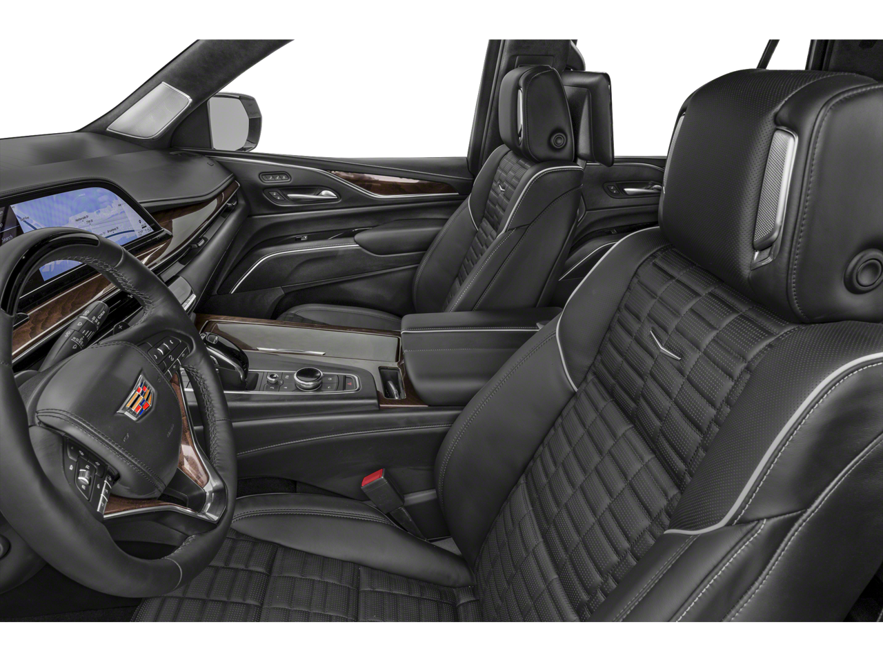 16.9 Diagonal OLED Infotainment Screen, 19 Speakers, 2-Presets Memory For Driver Seat Adjuster, 3 Years of OnStar & Connected Services Plan, 3.23 Axle Ratio, 3rd row seats: split-bench, 4-Way Power Driver Lumbar Seat Adjuster, 4-Way Power Front Passenger Lumbar Seat Adjuster, 4-Wheel Disc Brakes, 8-Way Power Driver Seat Adjuster, 8-Way Power Front Passenger Seat Adjuster, ABS brakes, Adaptive Cruise Control, Adaptive suspension, Air Conditioning, Air Ride Adaptive Suspension, AKG Studio 19-Speaker Audio System, Alloy wheels, AM/FM radio: SiriusXM with 360L, Apple CarPlay/Android Auto, Audio memory, Auto High-beam Headlights, Auto tilt-away steering wheel, Auto-dimming door mirrors, Auto-dimming Rear-View mirror, Automatic Seat Belt Tightening, Automatic temperature control, Body-Color Door Handles, Brake assist, Bumpers: body-color, Compass, Delay-off headlights, Door Lock & Latch Shields, Driver door bin, Driver vanity mirror, Dual front impact airbags, Dual front side impact airbags, Electronic Limited-Slip Differential, Electronic Stability Control, Emergency communication system: OnStar and Cadillac connected services capable, Enhanced Automatic Emergency Braking, Enhanced Automatic Parking Assist, Exterior Parking Camera Rear, Four wheel independent suspension, Front anti-roll bar, Front Bucket Seats, Front Center Armrest w/Storage, Front dual zone A/C, Front reading lights, Fully automatic headlights, Garage door transmitter, Glass Breakage Sensor, HD Radio, Heads-Up Display, Heated & Ventilated Driver & Front Passenger Seats, Heated door mirrors, Heated Driver & Front Passenger Seats, Heated front seats, Heated rear seats, Heated steering wheel, Hitch Guidance w/Hitch View, Illuminated entry, Illuminating Front & Rear Sill Plates, Integrated Trailer Brake Controller, Leather Seating Surfaces w/Precision Perf Inserts, Low tire pressure warning, Magnetic Ride Control Suspension, Memory seat, Navigation System, Not Equipped w/2nd Row Express-Up Window Control, Occupant sensing airbag, Outside temperature display, Overhead airbag, Overhead console, Panic alarm, Passenger door bin, Passenger vanity mirror, Power door mirrors, Power driver seat, Power Liftgate, Power moonroof, Power Panoramic Tilt-Sliding Sunroof, Power passenger seat, Power steering, Power windows, Preferred Equipment Group 1SC, Radio data system, Radio: AM/FM w/Navigation, Rain sensing wipers, Rear air conditioning, Rear anti-roll bar, Rear Camera Mirror, Rear Camera Mirror Washer, Rear Cross Traffic Alert, Rear reading lights, Rear window defroster, Rear window wiper, Reconfigurable Full-Color Head-Up Display, Remote keyless entry, Reverse Automatic Braking, Running Board Assist Steps, Security system, SiriusXM w/360L, Smart Trailer Integration Indicator, Soft Closing Front & Rear Doors, Speed control, Split folding rear seat, Spoiler, Steering wheel memory, Steering wheel mounted audio controls, Super Cruise, Tachometer, Teen Driver, Telescoping steering wheel, Theft-Deterrent Alarm System, Tilt steering wheel, Touring Package, Traction control, Trailer Side Blind Zone Alert, Trip computer, Turn signal indicator mirrors, Variably intermittent wipers, Vehicle Inclination Sensor, Vehicle Interior Movement Sensor, Ventilated front seats, Voltmeter, Wheels: 22 12-Spoke Polished Alloy, Wireless Apple CarPlay/Wireless Android Auto.