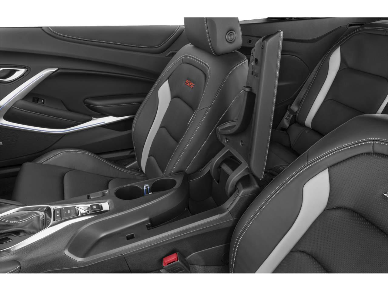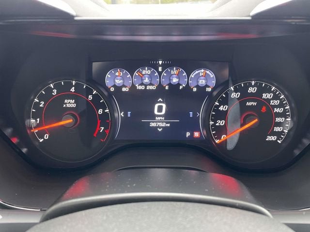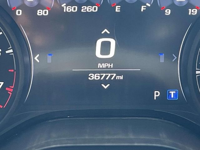 2.77 Rear Axle Ratio, 4-Wheel Disc Brakes, 6 Speakers, 6-Speaker Audio System Feature, 6-Way Power Front Passenger Seat Adjuster, 8-Way Power Driver Seat Adjuster, ABS brakes, Air Conditioning, Alloy wheels, Apple CarPlay/Android Auto, Automatic temperature control, Bluetooth® For Phone, Brake assist, Bumpers: body-color, Cloth Seat Trim, Compass, Convertible roof lining, Delay-off headlights, Driver door bin, Driver vanity mirror, Dual front impact airbags, Dual front side impact airbags, Electronic Stability Control, Exterior Parking Camera Rear, Four wheel independent suspension, Front anti-roll bar, Front Bucket Seats, Front Center Armrest, Front reading lights, Front Sport Bucket Seats, Fully automatic headlights, Glass rear window, Illuminated entry, Knee airbag, Leather Shift Knob, Low tire pressure warning, Occupant sensing airbag, Paddle-Shift Manual Controls, Panic alarm, Passenger door bin, Passenger vanity mirror, Power convertible roof, Power door mirrors, Power driver seat, Power passenger seat, Power steering, Power windows, Premium audio system: Chevrolet Infotainment System, Radio data system, Radio: Chevrolet Infotainment 3 Plus System, Rear anti-roll bar, Rear window defroster, Remote keyless entry, Remote Vehicle Starter System, Security system, Silver Rally Stripes, SiriusXM w/360L, Speed control, Speed-sensing steering, Spoiler, Steering wheel mounted audio controls, Tachometer, Telescoping steering wheel, Tilt steering wheel, Traction control, Trip computer, Variably intermittent wipers, Voltmeter.