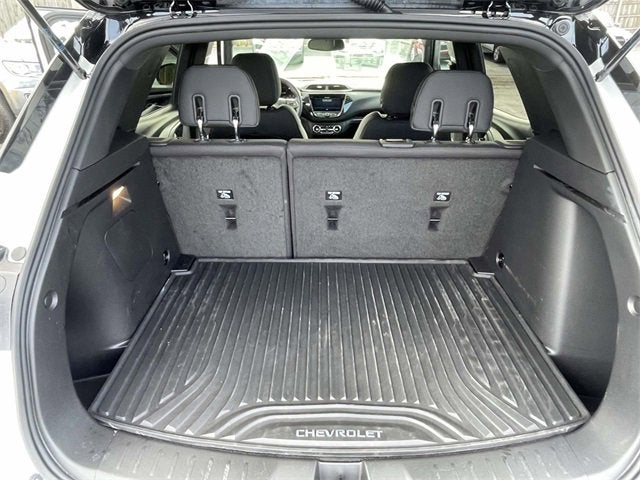 1 Type-A & 1 Type-C USB Charging-Only Ports, 120-Volt Power Outlet, 2-Way Adjustable Front Head Restraints, 2-Way Power Driver Lumbar Seat Adjuster, 4-Way Manual Front Passenger Seat Adjuster, 4-Wheel Disc Brakes, 5.45 Axle Ratio, 6 Speakers, 6-Speaker Audio System Feature, 7 Diagonal Color Touchscreen, 8-Way Power Driver Seat Adjuster, 8 Diagonal Color Touchscreen Display, ABS brakes, Air Conditioning, Alloy wheels, AM/FM radio: SiriusXM, Auto High-beam Headlights, Brake assist, Bumpers: body-color, Cabin Humidity Sensor, Cargo Mat, Cloth w/Leatherette Seat Trim, Compass, Convenience Package, Delay-off headlights, Driver & Front Passenger Illuminated Vanity Mirrors, Driver Confidence Package, Driver door bin, Driver vanity mirror, Dual front impact airbags, Dual front side impact airbags, Electronic Stability Control, Emergency communication system: OnStar and Chevrolet connected services capable, Exterior Parking Camera Rear, Flat-Folding Front Passenger Seatback, Front & Rear All-Weather Floor Liners (LPO), Front anti-roll bar, Front Bucket Seats, Front Center Armrest, Front fog lights, Front License Plate Bracket, Front reading lights, Front wheel independent suspension, Fully automatic headlights, Heated door mirrors, Heated Driver & Front Passenger Seats, Heated front seats, Heated Steering Wheel, Heated steering wheel, Illuminated entry, Inside Rear-View Auto-Dimming Mirror, Knee airbag, Lane Change Alert w/Side Blind Zone Alert, Leather Shift Knob, Leather steering wheel, Low tire pressure warning, Mosaic Black Metallic Two-Tone Roof, Not Equipped w/Rear Park Assist (060), Occupant sensing airbag, Overhead airbag, Overhead console, Panic alarm, Passenger door bin, Passenger vanity mirror, Power door mirrors, Power driver seat, Power steering, Power windows, Preferred Equipment Group 1RS, Radio data system, Radio: Chevrolet Infotainment 3 System, Rear Cross Traffic Alert, Rear Park Assist, Rear seat center armrest, Rear side impact airbag, Rear window defroster, Rear window wiper, Remote keyless entry, Ride & Handling Suspension, Security system, Single-Zone Auto Climate Control Air Conditioning, SiriusXM Radio, Speed control, Split folding rear seat, Spoiler, Steering wheel mounted audio controls, Tachometer, Telescoping steering wheel, Tilt steering wheel, Traction control, Trip computer, Variably intermittent wipers, Wheels: 18 High Gloss Black Machined Aluminum, Wireless Apple CarPlay/Android Auto.