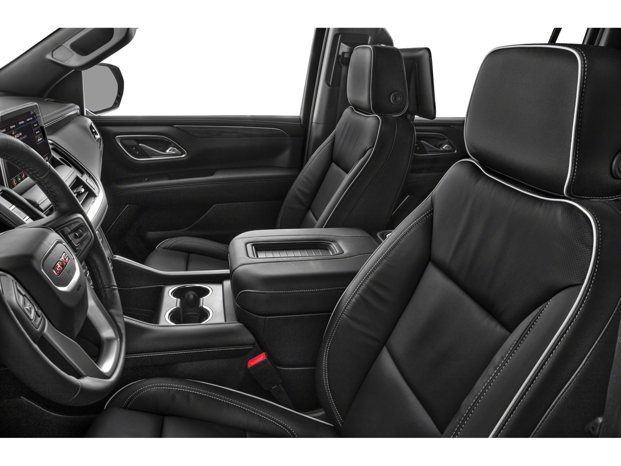2 Presets For Power Driver Seat, 2nd Row Manual-Folding Bucket Seats, 3.23 Rear Axle Ratio, 3rd row seats: split-bench, 4-Wheel Disc Brakes, 9 Speakers, ABS brakes, Air Conditioning, Alloy wheels, AM/FM radio: SiriusXM with 360L, AM/FM Stereo, Apple CarPlay/Android Auto, Auto High-beam Headlights, Auto-dimming Rear-View mirror, Automatic Emergency Braking, Automatic temperature control, Bodyside moldings, Bose 9-Speaker Stereo Audio System Feature, Brake assist, Bright Chrome Bodyside Moldings, Bright Front & Rear Door Sill Plates, Bumpers: body-color, Chrome Door Handles w/Body-Color Strip, Compass, Delay-off headlights, Driver door bin, Driver vanity mirror, Dual front impact airbags, Dual front side impact airbags, Dual-Pane Panoramic Power Sunroof, Electronic Stability Control, Emergency communication system: OnStar and GMC connected services capable, Following Distance Indicator, Forward Collision Alert, Four wheel independent suspension, Front & Rear Park Assist, Front anti-roll bar, Front Bucket Seats, Front Center Armrest, Front dual zone A/C, Front fog lights, Front Pedestrian Braking, Front reading lights, Fully automatic headlights, Garage door transmitter, Hands-Free Power Programmable Rear Liftgate, Heated & Ventilated Driver & Front Passenger Seats, Heated door mirrors, Heated Driver & Front Passenger Seats, Heated front seats, Illuminated entry, Inside Rear-View Auto-Dimming Mirror, IntelliBeam Automatic High Beam On/Off, Lane Change Alert w/Side Blind Zone Alert, Lane Keep Assist w/Lane Departure Warning, Low tire pressure warning, Memory seat, Navigation System, Not Equipped w/4-Way Driver & Fr Pass Pwr Lumbar, Occupant sensing airbag, Outside temperature display, Overhead airbag, Overhead console, Panic alarm, Passenger door bin, Passenger vanity mirror, Perforated Leather-Appointed Seating, Power door mirrors, Power driver seat, Power Liftgate, Power passenger seat, Power steering, Power windows, Preferred Equipment Group 4SA, Premium Smooth Ride Suspension, Rain sensing wipers, Rear air conditioning, Rear anti-roll bar, Rear Cross Traffic Alert, Rear reading lights, Rear seat center armrest, Rear window defroster, Rear window wiper, Remote keyless entry, Roof rack: rails only, Safety Alert Seat, Security system, SiriusXM w/360L, Speed control, Speed-sensing steering, Split folding rear seat, Spoiler, Steering wheel mounted audio controls, Tachometer, Telescoping steering wheel, Tilt steering wheel, Traction control, Trip computer, Universal Home Remote, Variably intermittent wipers, Ventilated front seats, Voltmeter, Wheels: 20 x 9 6-Spoke Polished Aluminum, Wheels: 22 Multi-Spoke Gloss Black (LPO), Wheels: 22 x 9 Steel Interim (LPO), Wireless Charging.