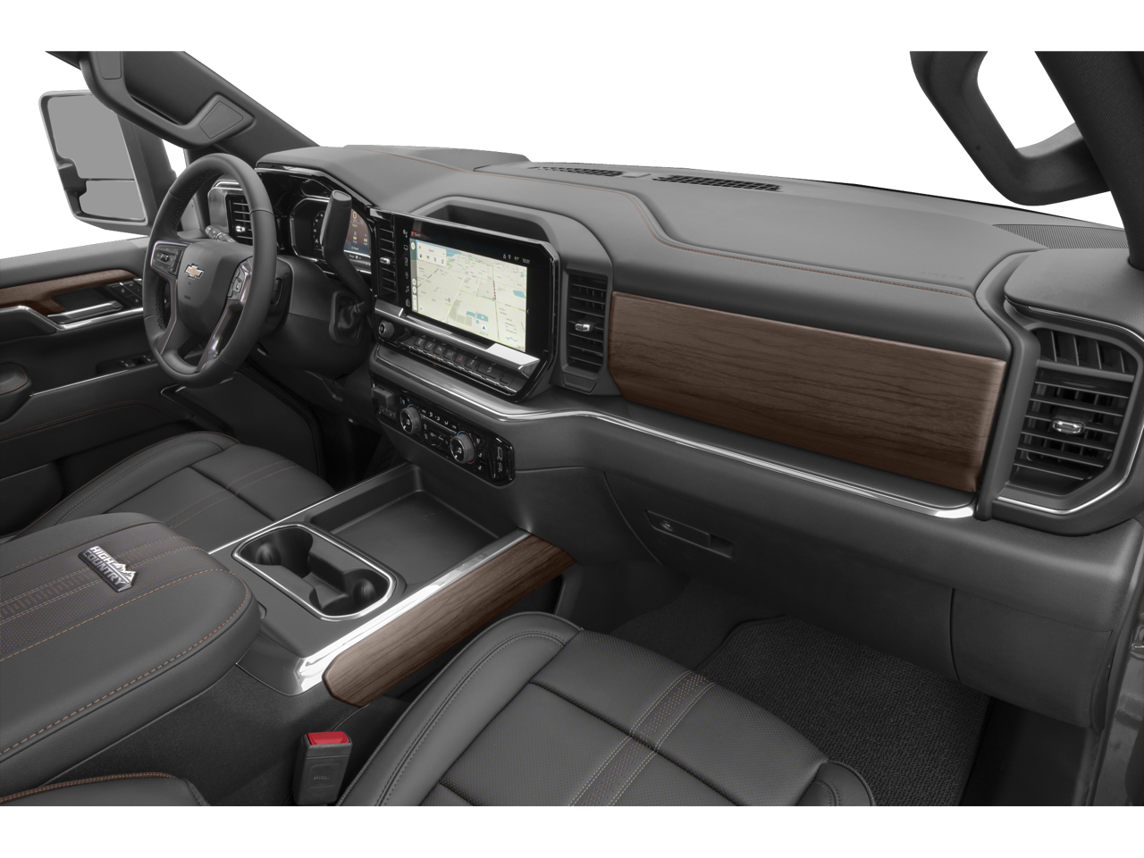 10-Way Power Driver Seat Adjuster w/Lumbar, 10-Way Power Passenger Seat Adjuster w/Lumbar, 120-Volt Bed Mounted Power Outlet, 120-Volt Interior Power Outlet, 15 Diagonal Multicolor Head-Up Display, 170 Amp Alternator, 4-Wheel Disc Brakes, 6 Rectangular Chromed Tubular Assist Steps, 7 Speakers, 720 Cold-Cranking Amps Heavy-Duty Battery, ABS brakes, Adaptive Cruise Control, Air Conditioning, Alloy wheels, AM/FM radio: SiriusXM with 360L, Apple CarPlay/Android Auto, Auto High-beam Headlights, Auto-dimming door mirrors, Auto-Dimming Inside Rear-View Mirror, Auto-dimming Rear-View mirror, Automatic temperature control, Bed View Camera w/2 Trailer Camera Provisions, Black Chevytec Spray-On Bedliner, Bluetooth® For Phone, Body-Color Front Bumper, Body-Color Rear Bumper, Bodyside moldings, BOSE Premium 7-Speaker Sound System, Brake assist, Bumpers: body-color, Chevrolet Connected Access Capable, Chrome Door Handles, Chrome Mirror Caps, Color-Keyed Carpeting Floor Covering, Compass, Deep-Tinted Glass, Delay-off headlights, Driver door bin, Driver Memory, Driver vanity mirror, Dual 220-Amp Primary/170-Amp Auxiliary Alternators, Dual front impact airbags, Dual front side impact airbags, Durabed Pickup Bed, Electric Rear-Window Defogger, Electronic Cruise Control w/Set & Resume Speed, Electronic Stability Control, Engine Block Heater, Exhaust Brake, EZ Lift Power Lock & Release Tailgate, Floor-Mounted Center Console, Front anti-roll bar, Front Bucket Seats, Front Carpeted Floor Mats, Front Center Armrest, Front Chrome Recovery Hooks, Front dual zone A/C, Front fog lights, Front LED Fog Lamps, Front License Plate Kit, Front Rain-Sensing Wipers, Front reading lights, Front wheel independent suspension, Fully automatic headlights, Garage door transmitter, Genuine wood console insert, Genuine wood dashboard insert, Genuine wood door panel insert, Gooseneck/5th Wheel Prep Package, Heated 2nd Row Outboard Seats, Heated door mirrors, Heated Driver & Front Outboard Passenger Seating, Heated front seats, Heated rear seats, Heated Steering Wheel, Heated steering wheel, Heavy Duty Front Spring/Camper Package, High Country Premium Package, High Idle Switch, Hill Descent Control, Hitch Guidance w/Hitch View, Illuminated entry, In-Vehicle Trailering App System, Keyless Open & Start, LED Cargo Area Lighting, LED Smoked Amber Roof Marker Lamps, LED Taillamps w/Fixed Signature, Low tire pressure warning, Manual Tilt & Telescoping Steering Column, Max Trailering Package, Memory seat, Multi-Flex Tailgate, Occupant sensing airbag, Off-Road Suspension, OnStar & Chevrolet Connected Services Capable, Outside temperature display, Overhead airbag, Overhead console, Panic alarm, Passenger door bin, Passenger vanity mirror, Perforated Leather Seat Trim, Polished Exhaust Tip, Power Door Locks, Power door mirrors, Power driver seat, Power Front Windows w/Driver Express Up/Down, Power Front Windows w/Passenger Express Up/Down, Power passenger seat, Power Rear Windows w/Express Down, Power Sliding Rear Window w/Defogger, Power steering, Power Sunroof, Power windows, Power-Retractable Assist Steps, Preferred Equipment Group 3LZ, Premium audio system: Chevrolet Infotainment 3 Premium, Push Button Start, Pwr Up/Down Tailgate Function w/Pwr Lock & Release, Radio: Chevrolet Infotainment 3 Premium System, Rain sensing wipers, Rear Camera Mirror, Rear Carpeted Floor Mats, Rear Cross Traffic Alert, Rear reading lights, Rear seat center armrest, Rear step bumper, Rear Wheelhouse Liners, Rear window defroster, Remote keyless entry, Remote Vehicle Starter System, Security system, SiriusXM w/360L, Speed control, Speed-sensing steering, Split folding rear seat, Standard Tailgate, Steering Wheel Audio Controls, Steering wheel mounted audio controls, Suspension Package, Tachometer, Technology Package, Telescoping steering wheel, Tilt steering wheel, Traction cont