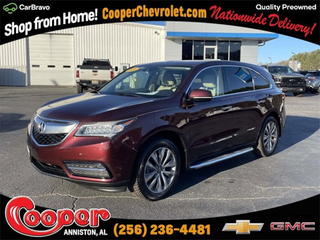 2016 Acura MDX 3.5L w/Technology Package Dark Cherry Pearl10 Speakers, 3rd row seats: split-bench, 4-Wheel Disc Brakes, 4.33 Axle Ratio, ABS brakes, Air Conditioning, Alloy wheels, AM/FM radio: SiriusXM, Anti-whiplash front head restraints, Auto tilt-away steering wheel, Auto-dimming Rear-View mirror, Automatic temperature control, Brake assist, Bumpers: body-color, CD player, Compass, Delay-off headlights, Driver door bin, Driver vanity mirror, Dual front impact airbags, Dual front side impact airbags, Electronic Stability Control, Exterior Parking Camera Rear, Four wheel independent suspension, Front anti-roll bar, Front Bucket Seats, Front Center Armrest w/Storage, Front dual zone A/C, Front reading lights, Garage door transmitter: HomeLink, Heated door mirrors, Heated front seats, Heated Front Sport Seats, Illuminated entry, Knee airbag, Lane Departure Warning System, Leather-Trimmed Interior, Low tire pressure warning, Memory seat, Navigation System, Occupant sensing airbag, Outside temperature display, Overhead airbag, Overhead console, Panic alarm, Passenger door bin, Passenger vanity mirror, Power door mirrors, Power driver seat, Power Liftgate, Power moonroof, Power passenger seat, Power steering, Power windows, Premium audio system: Acura/ELS Studio, Radio data system, Radio: Acura/ELS Studio Premium Audio System, Rain sensing wipers, Rear air conditioning, Rear anti-roll bar, Rear reading lights, Rear seat center armrest, Rear window defroster, Rear window wiper, Remote keyless entry, Security system, Speed control, Speed-sensing steering, Speed-Sensitive Wipers, Split folding rear seat, Spoiler, Steering wheel memory, Steering wheel mounted audio controls, Tachometer, Telescoping steering wheel, Tilt steering wheel, Traction control, Trip computer, Turn signal indicator mirrors, Variably intermittent wipers, Wheels: 19 x 8.0 Machine Finished Aluminum Alloy.At Cooper Chevrolet GMC we pride ourselves on transparent pricing !Clean CARFAX.Awards:* 2016 IIHS Top Safety Pick+, Top Safety Pick+ * 2016 KBB.com Best Buy Awards Finalist * 2016 KBB.com 5-Year Cost to Own AwardsKelley Blue Book Brand Image Awards are based on the Brand Watch(tm) study from Kelley Blue Book Market Intelligence. Award calculated among non-luxury shoppers. For more information, visit www.kbb.com. Kelley Blue Book is a registered trademark of Kelley Blue Book Co., Inc.*Insurance Institute for Highway Safety.Reviews:* Generous number of features for the money; adept handling; good fuel economy; confident acceleration; quiet cabin; excellent crash-test scores. Source: Edmunds