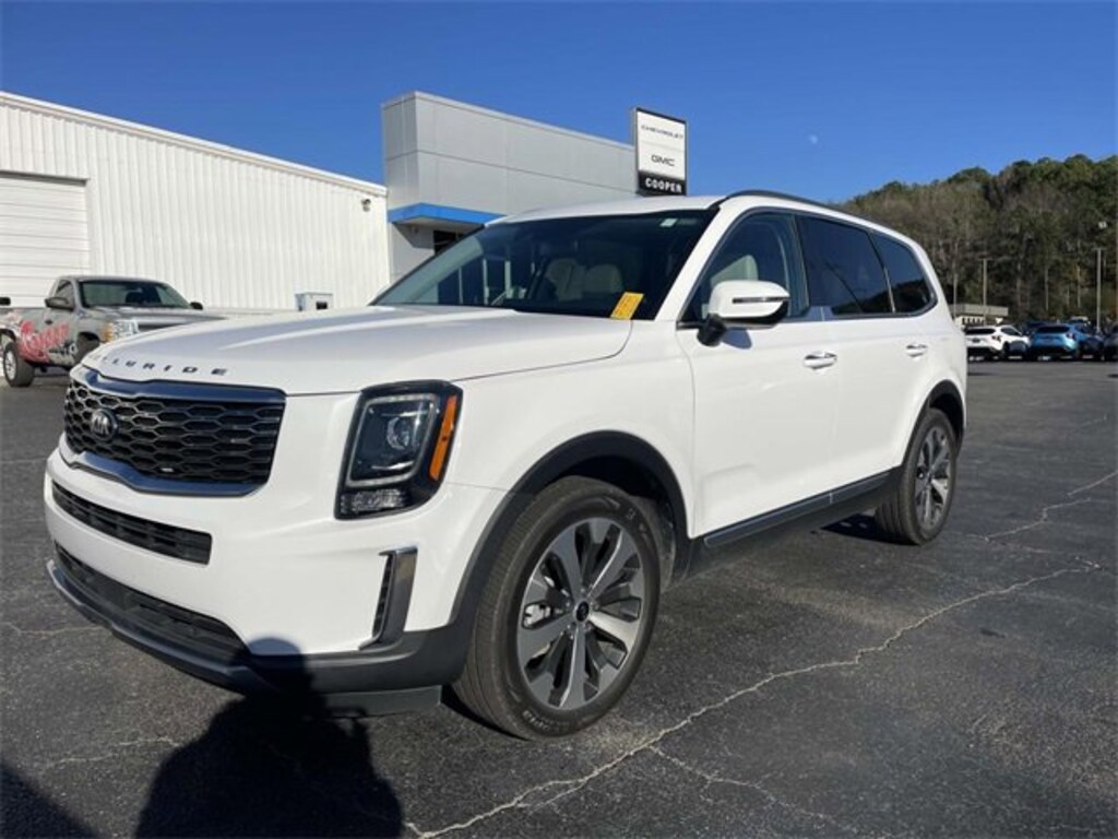 2021 Kia Telluride S Glacial White Pearl3.648 Axle Ratio, 3rd row seats: split-bench, 4-Wheel Disc Brakes, 6 Speakers, ABS brakes, Air Conditioning, Alloy wheels, AM/FM radio: SiriusXM, Apple CarPlay & Android Auto, Brake assist, Bumpers: body-color, Delay-off headlights, Driver door bin, Driver vanity mirror, Dual front impact airbags, Dual front side impact airbags, Electronic Stability Control, Emergency communication system: 911 Connect, Four wheel independent suspension, Front anti-roll bar, Front Bucket Seats, Front Center Armrest, Front reading lights, Fully automatic headlights, Heated door mirrors, Heated Front Bucket Seats, Heated front seats, Illuminated entry, Knee airbag, Leather Shift Knob, Leather steering wheel, Low tire pressure warning, Occupant sensing airbag, Outside temperature display, Overhead airbag, Overhead console, Panic alarm, Passenger door bin, Passenger vanity mirror, Power door mirrors, Power driver seat, Power moonroof, Power steering, Power windows, Radio data system, Radio: AM/FM/SIRIUS Display Audio, Rear air conditioning, Rear anti-roll bar, Rear reading lights, Rear window defroster, Rear window wiper, Reclining 3rd row seat, Remote keyless entry, Roof rack: rails only, Security system, Smart Key w/ Push Button and Remote Start, SOFINO Leathertte Seat Trim, Speed control, Speed-sensing steering, Split folding rear seat, Spoiler, Steering wheel mounted audio controls, Tachometer, Telescoping steering wheel, Tilt steering wheel, Traction control, Trip computer, Turn signal indicator mirrors, Variably intermittent wipers, Wheels: 7.5 x 20 Machined Finish Alloy.At Cooper Chevrolet GMC we pride ourselves on transparent pricing !Clean CARFAX.Awards:* JD Power Initial Quality Study (IQS) * JD Power Automotive Performance, Execution and Layout (APEAL) Study, Initial Quality Study (IQS)